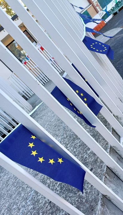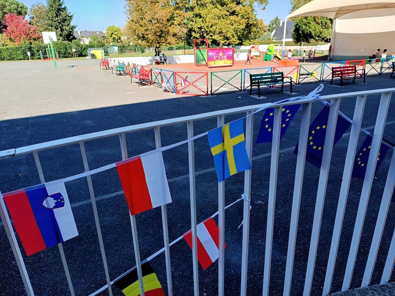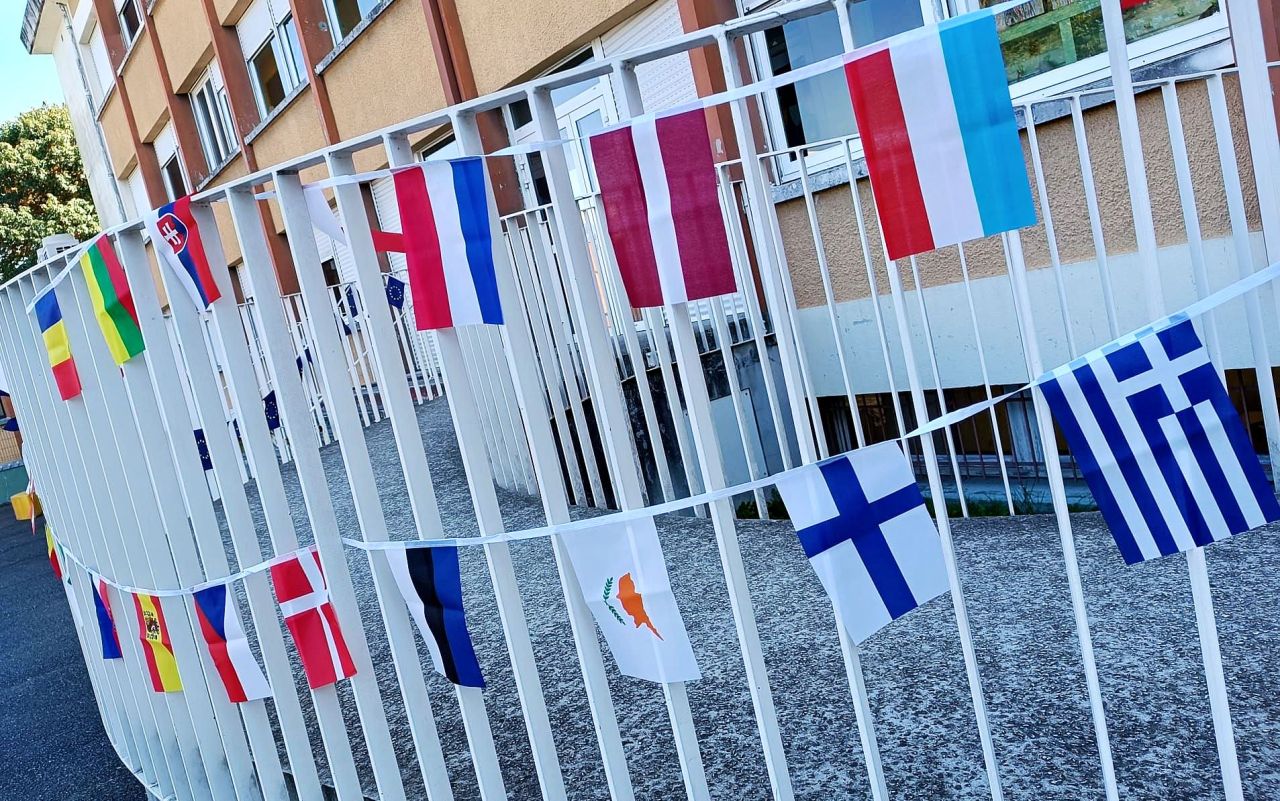 Pour cet événement, notre cour s'est habillée du drapeau européen et des drapeaux des pays membres.